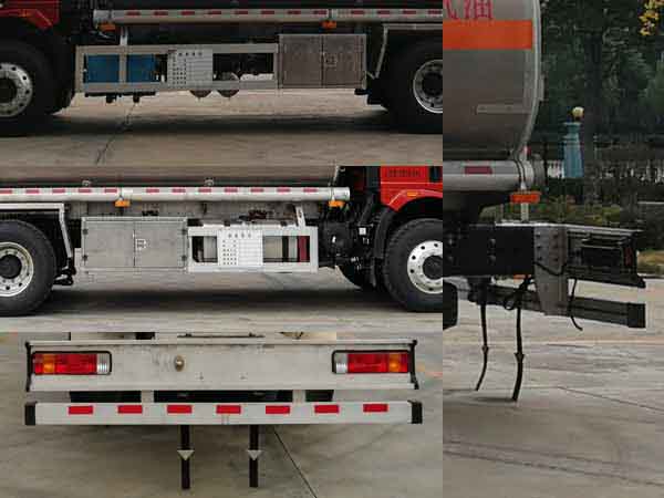 | 配置 | 1、該車適用于危險品運輸,運送危險貨物車輛類型為:FL型,類項號:3。運輸介質:汽油,密度:700千克/立方米。罐體有效容積24.5立方米,罐體外形尺寸(長×寬×高)(mm):7200×2400×1750。整車外形長與采用軸距/后懸對應關系為(mm):10110/4600+1350/2760,10110/4800+1350/2560。2、側、后防護材料均為鋁合金,螺栓連接;后防護截面尺寸(寬×高)(mm)60×120,下邊緣離地高500mm。3、隨底盤選裝高頂駕駛室,選裝前圍和燈具。僅選用排氣管前置、限速裝置(限速79km/h)、前輪盤式制動及子午線輪胎的底盤;安裝帶有衛(wèi)星定位功能的行駛記錄儀;ABS系統生產廠家:長春瑞立科密汽車電子有限公司,型號:CM4XL。采用發(fā)動機與油耗值對應關系為(L/100km):CA6DK1-32E6/37.47,CA6DK1-28E6/37.47。 該車后軸為采用空氣懸架. | ||