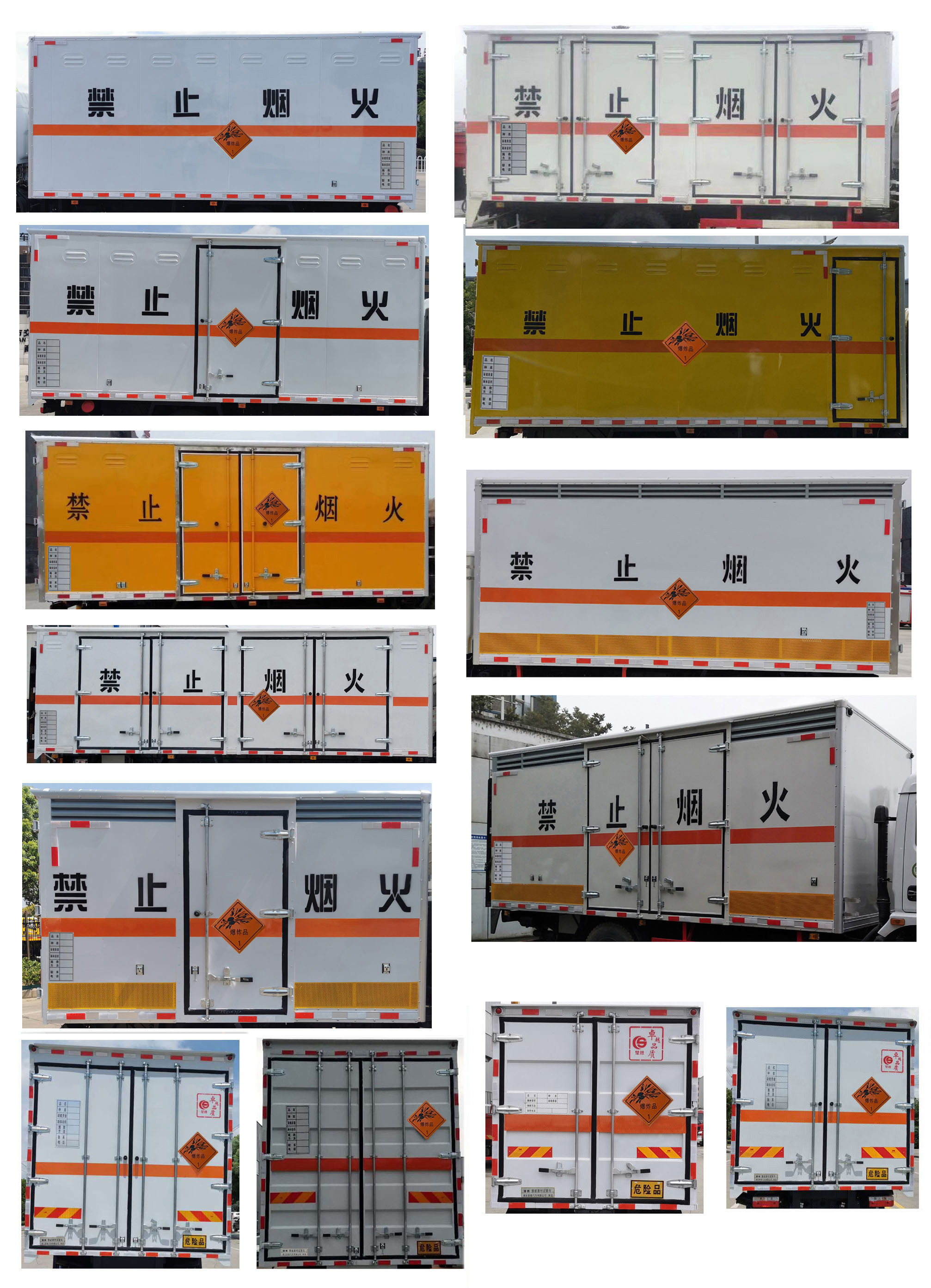 | 配置 | 1、該車適用于運(yùn)輸危險(xiǎn)品。運(yùn)輸具有**容器(瓶)包裝的物品,EX/Ⅲ型車輛,危險(xiǎn)貨物類項(xiàng)號(hào):1.1B,1.1G,1.3C,1.1D,1.2D,1.3C,1.1C,1.4G。廂體頂部封閉不可開啟。2、側(cè)/后防護(hù)材料為Q235,側(cè)防護(hù)螺栓連接,后防護(hù)焊接,截面尺寸(mm)120×50,下邊緣離地高490mm。3、隨底盤選裝駕駛室前面罩,選裝側(cè)窗玻璃;駕駛室頂部中間三個(gè)裝飾燈為選裝件;前霧燈為選裝件;駕駛室前臉擾流罩為選裝件。僅選用排氣管前置、限速裝置(限速80km/h)、前輪盤式制動(dòng)及子午線輪胎的底盤;轉(zhuǎn)向輪安裝輪胎爆胎應(yīng)急防護(hù)裝置。后軸采用空氣懸架。安裝帶有衛(wèi)星定位功能的行駛記錄儀,EBS型號(hào)/生產(chǎn)廠家:EBS3/威伯科(上海)管理有限公司。發(fā)動(dòng)機(jī)與油耗值(L/100Km)對(duì)應(yīng)關(guān)系為: B6.2NS6B210/26.5,DDi50E190-60/23.9。整車外形長(zhǎng)/軸距/前懸/后懸的對(duì)應(yīng)關(guān)系為(mm):8650/4700/1430/2520,9050/5000/1430/2620,9250/5000/1430/2820,10000/5800/1430/2770。4、該車型可選裝ETC車載裝置。廂體側(cè)面選裝開門型式及位置,選裝不帶側(cè)開門,選裝瓦楞板結(jié)構(gòu);廂體側(cè)面板選裝開百葉窗。 | ||