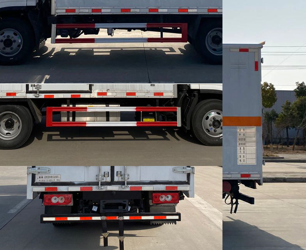 | 配置 | 該車為危險(xiǎn)品運(yùn)輸車,運(yùn)輸具有**容器(瓶)包裝的物品,運(yùn)送危險(xiǎn)物品類項(xiàng)號(hào):4.1,4.2,4.3。廂體頂部封閉,不可開啟。側(cè)后防護(hù)材料均為Q235,螺栓連接,后防護(hù)截面尺寸(mm)100×50,下邊緣離地高450mm。選裝后部尾板,選裝后部尾板時(shí)后防護(hù)材料為Q235,螺栓連接,截面尺寸(mm)φ100,下邊緣離地高450mm。廂體選裝側(cè)開門及位置或無(wú)側(cè)門、選裝后門雙拉桿,廂體選裝瓦楞板結(jié)構(gòu),選裝百葉窗。僅選用排氣管前置、限速裝置(限速80km/h)、前輪盤式制動(dòng)及子午線輪胎的底盤;轉(zhuǎn)向輪裝備輪胎爆胎應(yīng)急防護(hù)裝置。安裝帶有衛(wèi)星定位功能的行駛記錄儀。ABS型號(hào)/生產(chǎn)廠家:ABS-E/威伯科汽車**系統(tǒng)(**)有限公司,ABS-VI·E/廣州瑞立科密汽車電子股份有限公司,YF8/武漢元豐汽車電控系統(tǒng)有限公司。發(fā)動(dòng)機(jī)/油耗值(L/100Km)對(duì)應(yīng)關(guān)系為: F2.8NS6B131/11.47,Q28-130E60/11.02。尾板收起狀態(tài)水平長(zhǎng)度為280mm,尾板質(zhì)量為350kg。選裝ETC。 | ||