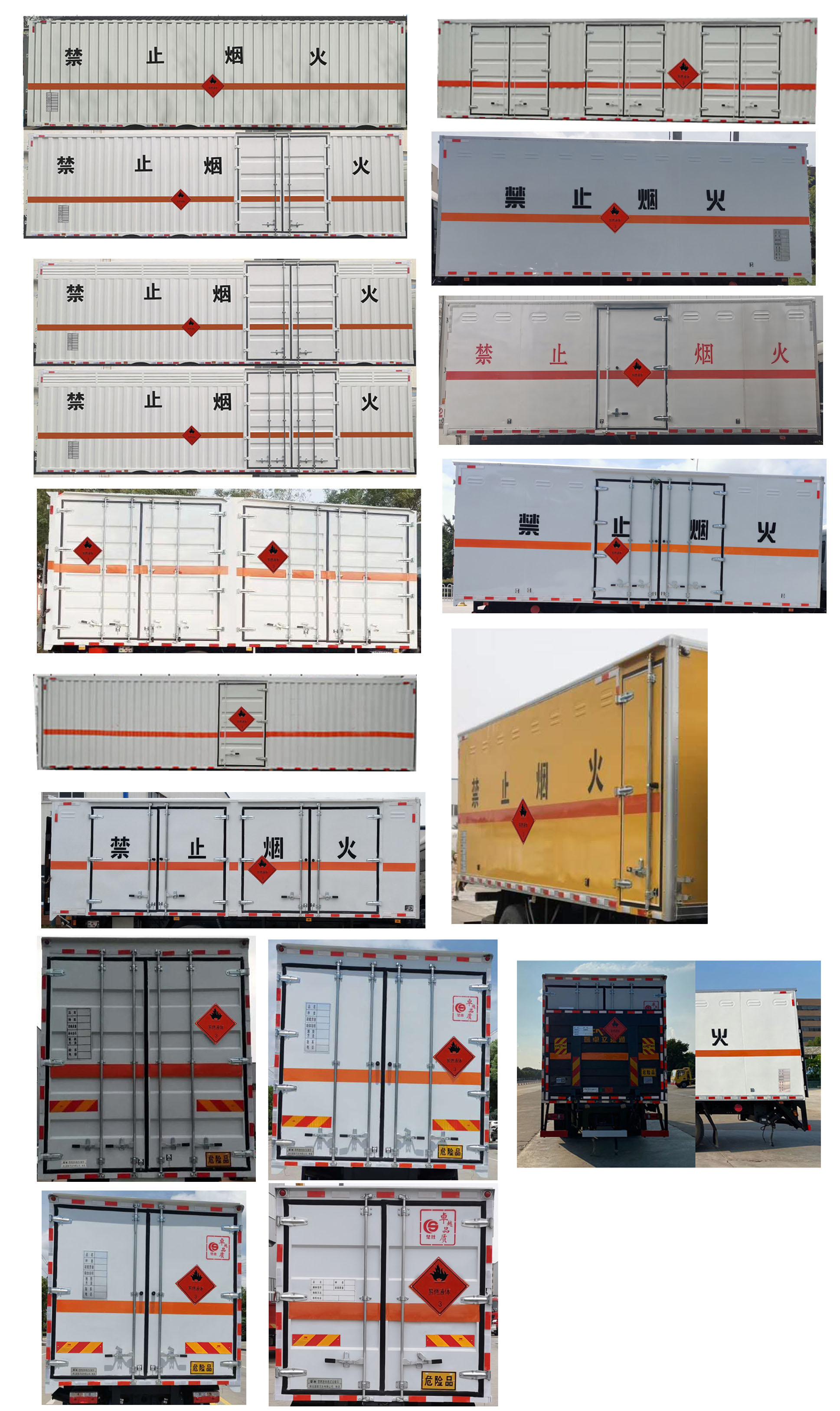 | 配置 | 1、該車適用于運輸危險品,運輸具有**容器(瓶)包裝的物品,運送危險物品類項號:3。廂體頂部封閉,不可開啟。2、側(cè)/后防護材料為Q235,側(cè)防護螺栓連接,后防護焊接,截面尺寸120×60mm,下邊緣離地高490mm。3、僅采用軸距(mm):4700,5000。隨底盤選裝駕駛室前面罩,選裝側(cè)窗玻璃,駕駛室頂部中間三個裝飾燈為選裝件,前霧燈為選裝件,駕駛室前臉擾流罩為選裝件。僅選用排氣管前置、限速裝置(限速80km/h)、前輪盤式制動及子午線輪胎的底盤,安裝帶有衛(wèi)星定位功能的行駛記錄儀,EBS型號/生產(chǎn)廠家:EBS5/東科克諾爾商用車制動系統(tǒng)(十堰)有限公司。采用的發(fā)動機與油耗值(L/100Km)對應關(guān)系為: B6.2NS6B210/26.5,DDi50E190-60/23.9。4、廂體側(cè)面選裝開門型式及位置,選裝不帶側(cè)開門,選裝瓦楞板結(jié)構(gòu);廂體側(cè)面板選裝開百葉窗。選裝尾板,尾板收起狀態(tài)水平長度為290mm,尾板質(zhì)量為550kg。選裝ETC。 | ||