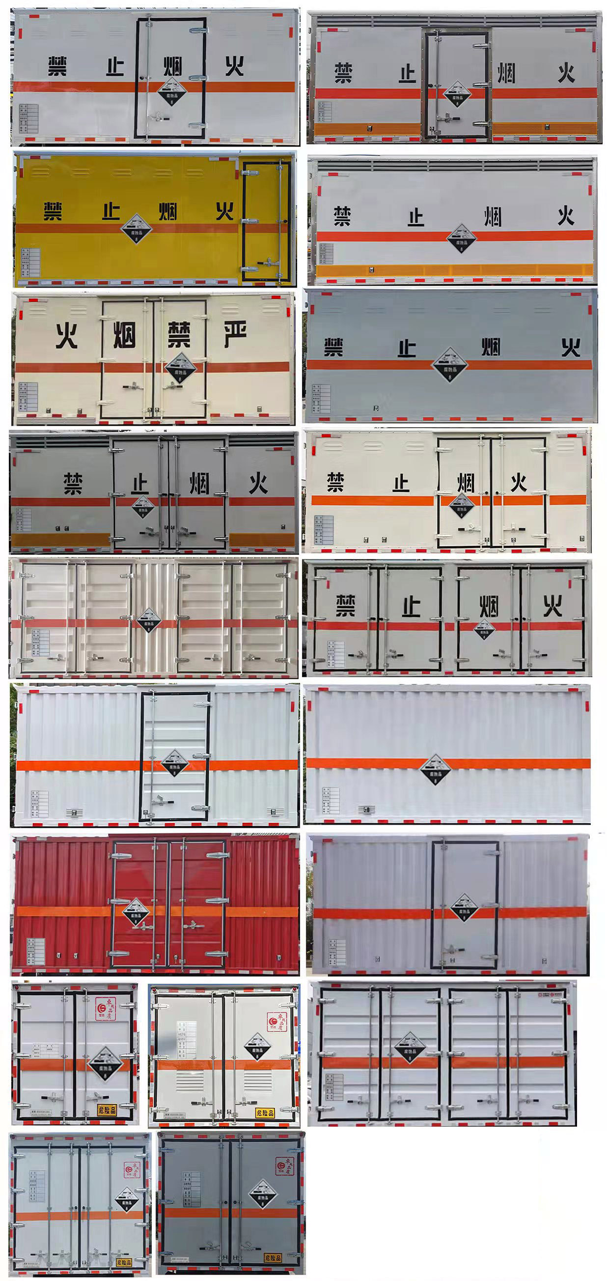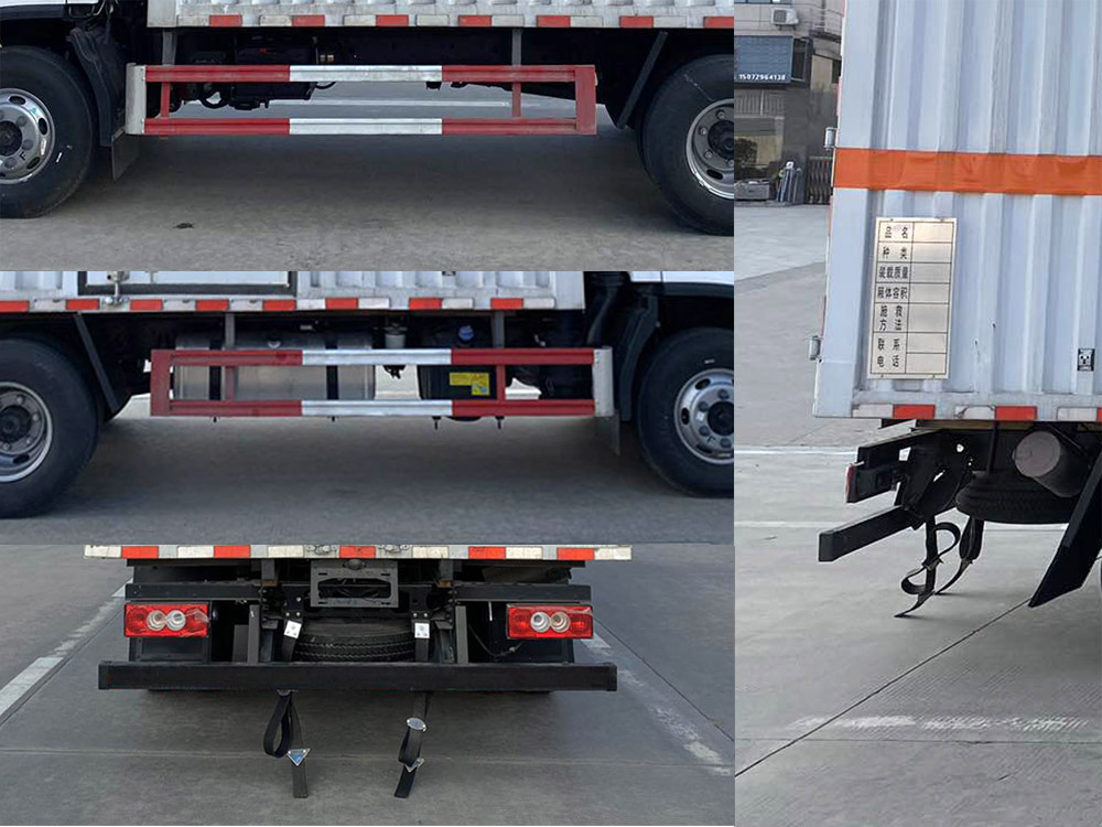 | 其它: | 1、該車適用于運(yùn)輸危險(xiǎn)品。廂體頂部封閉不可開啟。運(yùn)輸具有獨(dú)立容器(瓶)包裝的物品,運(yùn)送危險(xiǎn)物品類項(xiàng)號:8。2、側(cè),后防護(hù)材料均為Q235,螺栓連接;后防護(hù)截面尺寸100×50mm,下邊緣離地高410mm。廂體側(cè)面選裝開門型式及位置,選裝不帶側(cè)開門,選裝瓦楞板結(jié)構(gòu);選裝百葉窗。3、隨底盤選裝排半駕駛室,選裝導(dǎo)流罩。僅選用排氣管前置、限速裝置(限速80km/h)、前輪盤式制動(dòng)及子午線輪胎的底盤;轉(zhuǎn)向輪裝備輪胎爆胎應(yīng)急防護(hù)裝置。安裝帶衛(wèi)星定位功能的行駛記錄儀。ABS系統(tǒng)型號:ABS-VI.E;生產(chǎn)企業(yè):廣州瑞立科密汽車電子股份有限公司.ABS系統(tǒng)型號:ABS-E;生產(chǎn)企業(yè):威伯科汽車控制系統(tǒng)(中國)有限公司.ABS系統(tǒng)型號:ABS8.8 ECU 24V,生產(chǎn)企業(yè):東科克諾爾商用車制動(dòng)系統(tǒng)(十堰)有限公司。發(fā)動(dòng)機(jī)/油耗值(L/100km)對應(yīng)關(guān)系為:CY4SK261/16.09,D30TCIF1/16.19,F2.8NS6B156/15.39,F3.8NS6B156/14.90??蛇x裝ETC車載裝置。 | ||