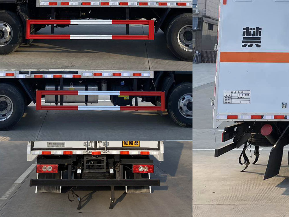 | 其它: | 1、該車適用于運輸危險品。廂體頂部封閉不可開啟。運輸具有獨立容器(瓶)包裝的物品,運送危險物品類項號:6.1,6.2。2、側(cè),后防護材料均為Q235,螺栓連接;后防護截面尺寸100×50mm,下邊緣離地高410mm。廂體側(cè)面選裝開門型式及位置,選裝不帶側(cè)開門,選裝瓦楞板結(jié)構(gòu);選裝百葉窗。3、隨底盤選裝排半駕駛室。僅選用排氣管前置、限速裝置(限速80km/h)、前輪盤式制動及子午線輪胎的底盤;轉(zhuǎn)向輪裝備輪胎爆胎應(yīng)急防護裝置。安裝帶衛(wèi)星定位功能的行駛記錄儀。ABS系統(tǒng)型號:ABS-VI.E;生產(chǎn)企業(yè):廣州瑞立科密汽車電子股份有限公司;ABS系統(tǒng)型號:ABS-E;生產(chǎn)企業(yè):威伯科汽車控制系統(tǒng)(中國)有限公司;ABS系統(tǒng)型號:ABS8.8 ECU 24V,生產(chǎn)企業(yè):東科克諾爾商用車制動系統(tǒng)(十堰)有限公司;發(fā)動機/油耗值(L/100km)對應(yīng)關(guān)系為:CY4SK261/16.09,D30TCIF1/16.19,F2.8NS6B156/15.39,F3.8NS6B156/14.90。可選裝ETC車載裝置。 | ||