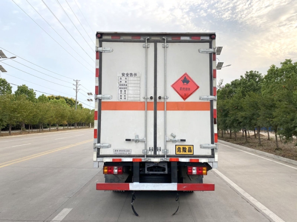 1、復(fù)合板工藝:嚴(yán)格按照公告尺寸制作。外板采用優(yōu)質(zhì)烤漆板(顏色可選:白,灰,檸檬黃)帶百葉窗,內(nèi)飾為導(dǎo)電性能良好的鋁平板有透氣孔,矩形骨架結(jié)構(gòu)內(nèi)部填充防火阻燃材料,復(fù)合加鉚合工藝。廂體四周鋁合金包邊及包角,車廂底板鋪設(shè)防靜電膠皮,廂體前臉50公分高鋪設(shè)防靜電膠皮。后部設(shè)置對開門,右側(cè)單開門,廂體內(nèi)部兩側(cè)安裝捆綁貨物的臥環(huán)。廂體內(nèi)部安裝煙霧報(bào)警器,門上安裝防盜報(bào)警器。車廂一周粘貼橙色反光帶,箱體粘貼菱形標(biāo)志牌,安全告示牌,危險(xiǎn)品牌,箱體安裝示廓燈(前白后紅),拖地靜電帶。