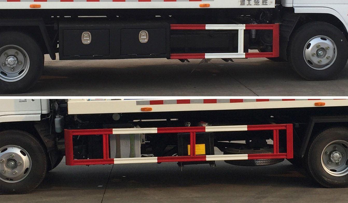 1、該車主要用于道路車輛清障,主要專用裝置為托臂、平板、絞盤(pán)、鋼絲繩、油缸。整備質(zhì)量與托舉質(zhì)量對(duì)應(yīng)關(guān)系:4850/2255kg,5150/1955kg。選裝尾部站板;選裝龍門(mén)架樣式。2、側(cè)防護(hù)材料為Q235,后防護(hù)由專用裝置代替,下邊緣離地高500mm。3、隨底盤(pán)選裝制動(dòng)系統(tǒng):裝液壓制動(dòng)系統(tǒng)時(shí),ABS及其**器型號(hào)/生產(chǎn)企業(yè)對(duì)應(yīng)關(guān)系為:APG3550500A/浙江亞太機(jī)電股份有限公司,CM4YL/廣州瑞立科密汽車電子股份有限公司;裝氣壓制動(dòng)系統(tǒng)時(shí),ABS及其**器型號(hào)/生產(chǎn)企業(yè)對(duì)應(yīng)關(guān)系為:CM4XL-4S/4M/廣州瑞立科密汽車電子股份有限公司。隨底盤(pán)選裝前部標(biāo)牌“KVNNR/NNR/KV100”、選裝輪眉。隨底盤(pán)配置選裝底盤(pán)附件安裝位置。選裝備胎位置。 |