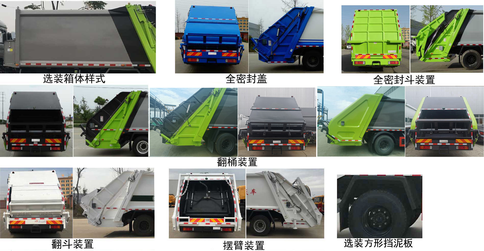 | 配置 | 1、該車主要專用裝置由箱體、填料器總成、壓縮系統(tǒng)等組成,用于垃圾的收集與清運。該車可選裝方形或弧形箱體,選裝全密封蓋裝置。選裝后部工作裝置。選裝工作裝置時外形長/軸距/后伸對應(yīng)關(guān)系為(mm):①無上料裝置:8620/4500/-;②全密封斗裝置和擺臂裝置:8820/4500/200;③翻桶裝置和翻斗裝置:9020/4500/400。僅采用4500mm軸距。2、側(cè)防護(hù)材料Q235,螺栓連接;后防護(hù)由專用裝置代替,下邊緣離地高:500mm。3、隨底盤選裝半高頂駕駛室,選裝改前圍的駕駛室,選裝不同結(jié)構(gòu)的翼子板。安裝帶有衛(wèi)星定位功能的行駛記錄儀。ABS生產(chǎn)廠家/型號:浙江萬安科技股份有限公司/VIE ABS-II。發(fā)動機與油耗值對應(yīng)關(guān)系為(L/100Km):WP4.6NQ220E61/26.51,CA4DLD-19E6/26.5,CA6DLD-22E6/26.5。 | ||