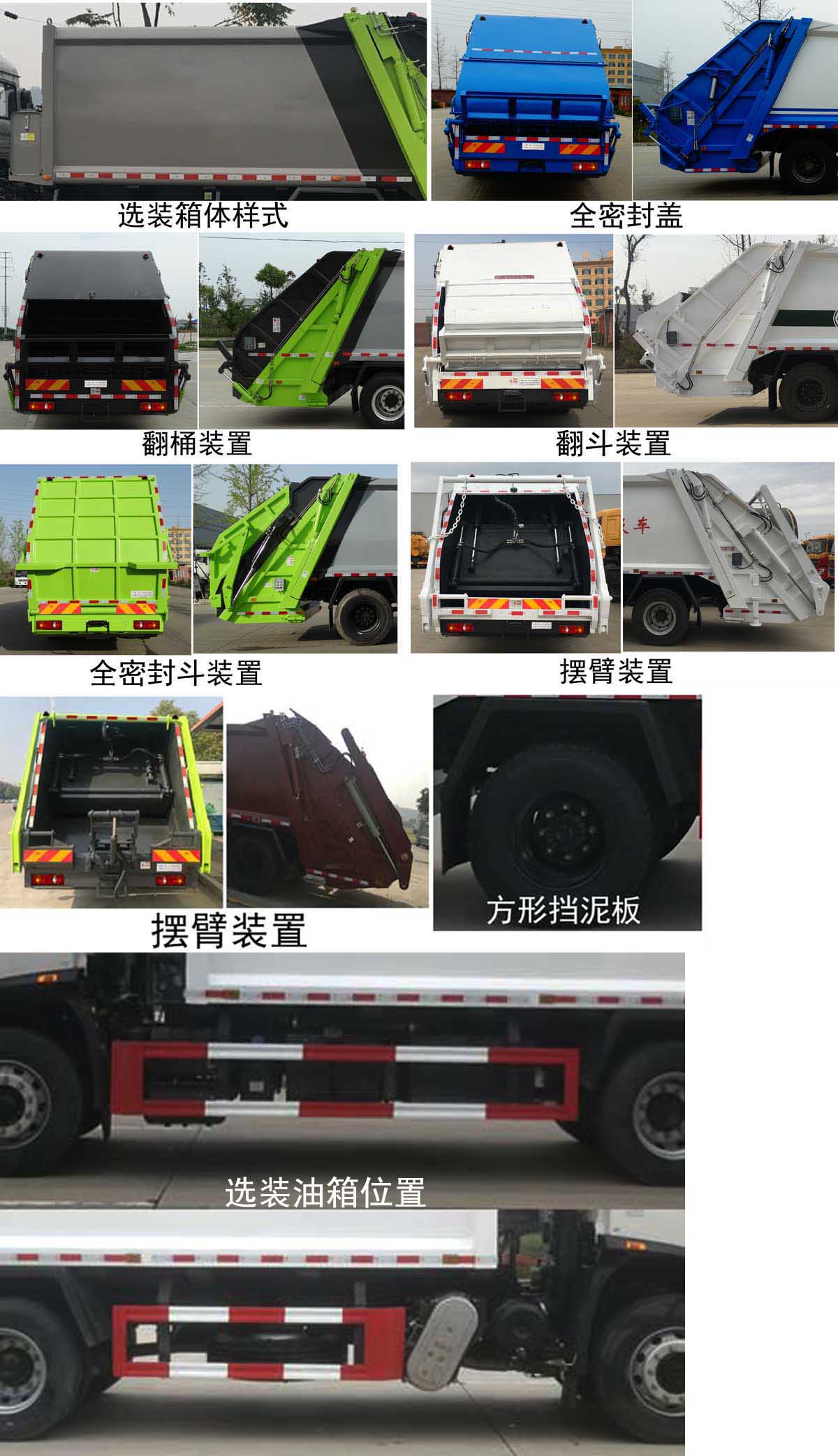 | 配置 | 1、該車主要專用裝置由箱體、壓縮系統(tǒng)組成,用于垃圾的收集與清運。該車可選裝方形或弧形箱體,選裝全密封蓋裝置,選裝方形擋泥板,選裝后部工作裝置,選裝側(cè)防護樣式。選裝工作裝置時外形長/前懸/軸距/后伸對應關(guān)系為(mm):①無上料裝置:8670/1400/4500/-;8700/1430/4500/-;8870/1400/4700/-;8900/1430/4700/-;②全密封斗裝置和擺臂裝置:8870/1400/4500/200;8900/1430/4500/200;9070/1400/4700/200;9100/1430/4700/200;③翻桶裝置和翻斗裝置:9070/1400/4500/400;9100/1430/4500/400;9270/1400/4700/400;9300/1430/4700/400。僅采用4500mm,4700mm軸距。2、側(cè)防護采用冷彎型鋼/Q235,螺栓連接;后防護由專用裝置替代,下邊緣離地高:500mm。3、隨底盤選裝高度不同的駕駛室;選裝前霧燈;選裝駕駛室頂部裝飾燈;選裝駕駛室前面罩;選裝前保險杠及前部燈具,駕駛室前臉擾流罩為選裝件;駕駛室臥鋪側(cè)窗選裝裝飾板;選裝油箱安裝位置,選裝踏步結(jié)構(gòu)。安裝帶有衛(wèi)星定位功能的行駛記錄儀。ABS型號/生產(chǎn)廠家:3631010-C2000/東科克諾爾商用車制動系統(tǒng)(十堰)有限公司,ABS 8/東科克諾爾商用車制動系統(tǒng)(十堰)有限公司, 4460046450/威伯科汽車**系統(tǒng)(**)有限公司。采用的發(fā)動機與油耗值對應關(guān)系為(L/100Km):DDi50E190-60/23.9,D4.5NS6B190/24.4,D6.7NS6B230/23.7,B6.2NS6B210/23.8,B6.2NS6B230/23.8。 | ||