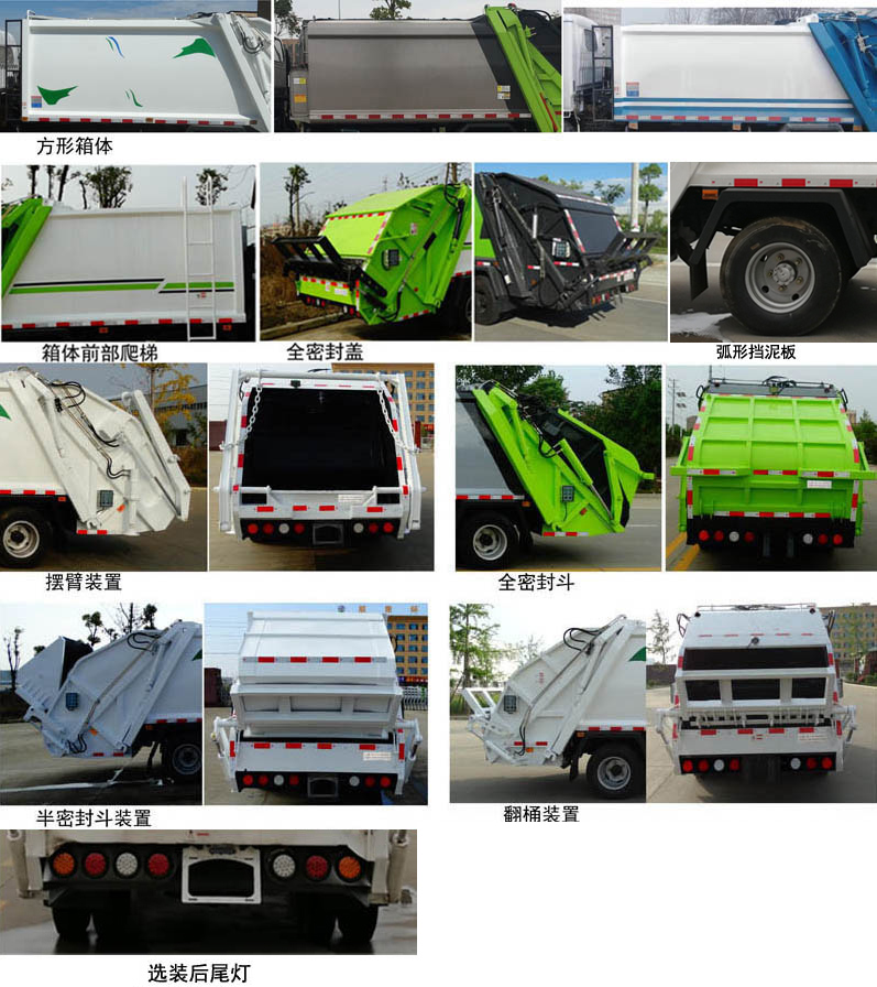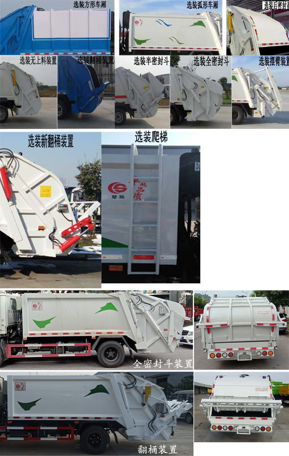 | 配置 | 1、該車主要專用裝置由箱體、壓縮系統(tǒng)組成,用于垃圾的收集與清運。該車可選裝方形或弧形箱體,選裝全密封蓋裝置,選裝方形擋泥板,選裝箱體前部爬梯,選裝后部工作裝置。選裝工作裝置時,外形長(mm)/后伸(mm)/整備質量(kg)對應關系:①無上料裝置: 6525/-/5530;②擺臂裝置: 6685/160/5850;③全密封斗裝置:6725/200/5850;④翻桶裝置,半密封斗裝置:6925/400/5850。2、側防護采用冷彎型鋼/Q235,螺栓連接;后防護由專用裝置替代,下邊緣離地高500mm。3、ABS系統(tǒng)型號:VIE ABS-II,ABS系統(tǒng)生產廠家:浙江萬安科技股份有限公司。發(fā)動機JX4D30D6H的油耗值為13.9 L/100km。隨底盤選裝左右車門上方黑色貼膜可選擇取消。選裝輪輞外觀。選裝前臉、前部燈具。該車型可選裝ETC車載裝置. | ||