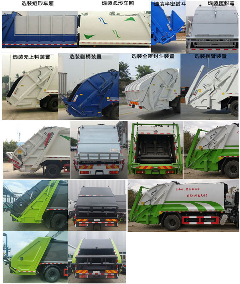 其它 | 1、該車(chē)主要專(zhuān)用裝置由箱體、壓縮系統(tǒng)組成,用于垃圾的收集與清運(yùn)。該車(chē)可選裝方形或弧形箱體,選裝全密封蓋裝置,選裝方形擋泥板,選裝側(cè)防護(hù)連接結(jié)構(gòu)件,選裝側(cè)防護(hù)樣式。選裝后部工作裝置。選裝多路閥位置,液壓油箱位置。選裝爬梯樣式;選裝工作裝置時(shí)外形長(zhǎng)/前懸/軸距/后伸對(duì)應(yīng)關(guān)系為(mm):①無(wú)上料裝置:8680/1400/4500/-,8710/1430/4500/-,8880/1400/4700/-,8910/1430/4700/- ;②全密封斗裝置和擺臂裝置:8880/1400/4500/200,8910/1430/4500/200,9080/1400/4700/200,9110/1430/4700/200;③翻桶裝置和翻斗裝置:9080/1400/4500/400,9110/1430/4500/400,9280/1400/4700/400,9310/1430/4700/400。僅采用4500mm,4700mm軸距。2、側(cè)防護(hù)采用冷彎型鋼/Q235,螺栓連接;后防護(hù)由專(zhuān)用裝置替代,下邊緣離地高:500mm。3、隨底盤(pán)選裝選裝高度不同的駕駛室;選裝前霧燈;選裝駕駛室頂部裝飾燈;選裝駕駛室前面罩;選裝前保險(xiǎn)杠及前部燈具,選裝后視鏡;選裝后部燈具;選裝駕駛室前臉擾流罩;駕駛室臥鋪側(cè)窗選裝裝飾板,選裝后背式排氣管。安裝帶有衛(wèi)星定位功能的行駛記錄儀。ABS型號(hào)/生產(chǎn)廠家:3631010-C2000/東科克諾爾商用車(chē)制動(dòng)系統(tǒng)(十堰)有限公司,ABS 8/東科克諾爾商用車(chē)制動(dòng)系統(tǒng)(十堰)有限公司, 4460046450/威伯科汽車(chē)控制系統(tǒng)(中國(guó))有限公司,J ABS/焦作博瑞克控制技術(shù)有限公司。采用的發(fā)動(dòng)機(jī)與油耗值對(duì)應(yīng)關(guān)系為(L/100Km):DDi50E190-60/23.9,D4.5NS6B190/24.4,D6.7NS6B230/23.7,B6.2NS6B210/23.8,B6.2NS6B230/23.8。隨底盤(pán)選裝油箱位置。選裝箱體樣式,填裝器樣式。隨底盤(pán)選裝后處理、電瓶、尿素罐、備胎安裝位置。選裝油管布局. | ||