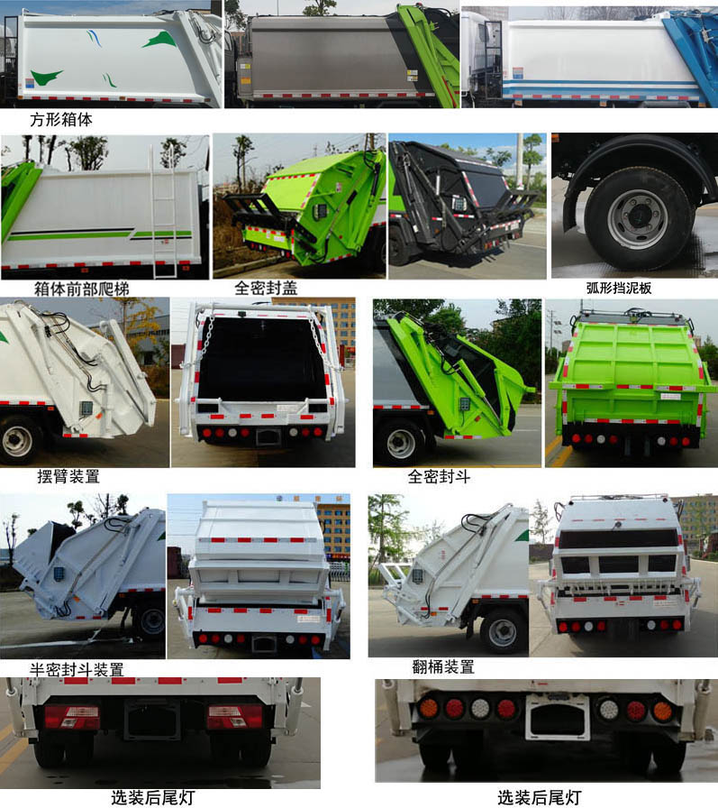 | 配置 | 1、該車主要專用裝置由箱體、壓縮系統(tǒng)組成,用于垃圾的收集與清運。該車可選裝方形或弧形箱體,選裝全密封蓋裝置,選裝弧形擋泥板,選裝箱體前部爬梯,選裝后部工作裝置。選裝工作裝置時,外形長(mm)/后伸(mm)/整備質(zhì)量(kg)對應關系:①無上料裝置: 6570/-/5830;②擺臂裝置: 6730/160/6100;③全密封斗裝置: 6770/200/6100;④翻桶裝置,半密封斗裝置:6970/400/6100。2、側(cè)防護采用冷彎型鋼/Q235,螺栓連接;后防護由專用裝置替代,下邊緣離地高500mm。3、隨底盤選裝黑色輪輞。ABS系統(tǒng)型號: VIE ABS-II,ABS系統(tǒng)生產(chǎn)廠家: 浙江萬安科技股份有限公司。發(fā)動機JX4D306H的油耗值為14.5L/100km。 | ||