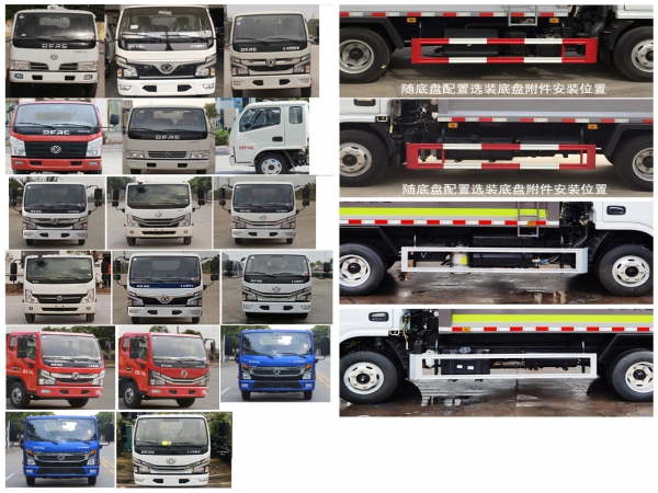 其它 | 該車主要專用裝置由箱體、壓縮系統(tǒng)組成,用于垃圾的收集與清運(yùn).側(cè)防護(hù)材料為冷彎型鋼/Q235,螺栓連接;后防護(hù)由專用裝置代替,下邊緣離地高450mm.選裝方形或弧形車箱;選裝箱體與駕駛室之間多路閥、液壓油箱、液壓管布置;選裝箱體前端爬梯位置;選裝電瓶位置;選裝多路閥罩;選裝填裝器外罩;選裝后密封蓋裝置.選裝不同工作裝置時(shí)外形長(zhǎng)/后伸(mm)對(duì)應(yīng)關(guān)系:①無(wú)上料裝置:6500/0,②擺臂裝置:6650/150,③全密封斗裝置:6650/150, ④半密封斗裝置及⑤翻桶裝置:6900/400.發(fā)動(dòng)機(jī)與油耗值(L/100km)的對(duì)應(yīng)關(guān)系為:CA4DB1-11E6/16.3,CY4BK161/16.2,CY4BK461/16.2,D20TCIF1/16.3,D20TCIF11/16.3,YCY24140-60/16.3,ZD30D16-6N/16.3,H20-120E60/14.9,Q28-130E60/15.9,CA4DB1-13E6/16.2,Q23-115E60/14.5.隨底盤(pán)選裝前面罩,前保險(xiǎn)杠,前組合燈具,選裝排半駕駛室,選裝左右油箱位置,隨底盤(pán)配置選裝底盤(pán)附件安裝位置.僅選用軸距3308mm底盤(pán)改裝.選裝直接供電式ETC車載裝置.ABS型號(hào)/生產(chǎn)企業(yè):ABS/ASR-12V-4S/4M/襄陽(yáng)東風(fēng)隆誠(chéng)機(jī)械有限責(zé)任公司.各發(fā)動(dòng)機(jī)凈功率(kW)值如下:D20TCIF1:88,YCY24140-60:99,CA4DB1-11E6:79,ZD30D16-6N:115,CY4BK461:92,CY4BK161:102,Q23-115E60:82,H20-120E60:87,CA4DB1-13E6:93.Q28-130E60:93,D20TCIF11:88.隨底盤(pán)選裝氣壇子、尿素罐安裝位置.選裝電瓶安裝位置,選裝污水箱安裝位置.選裝填充器樣式.選裝后部工作裝置. | ||